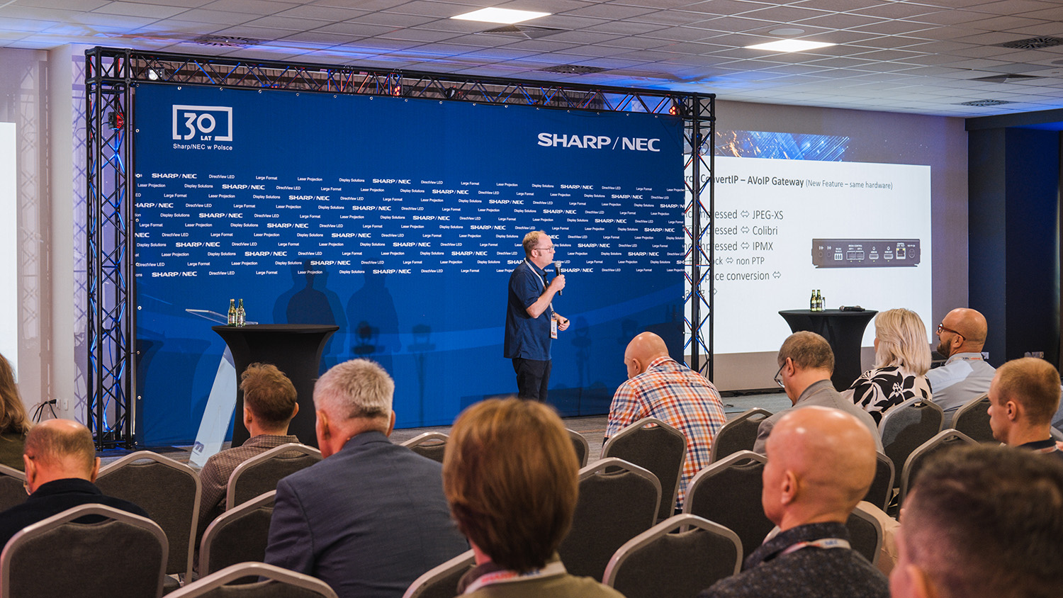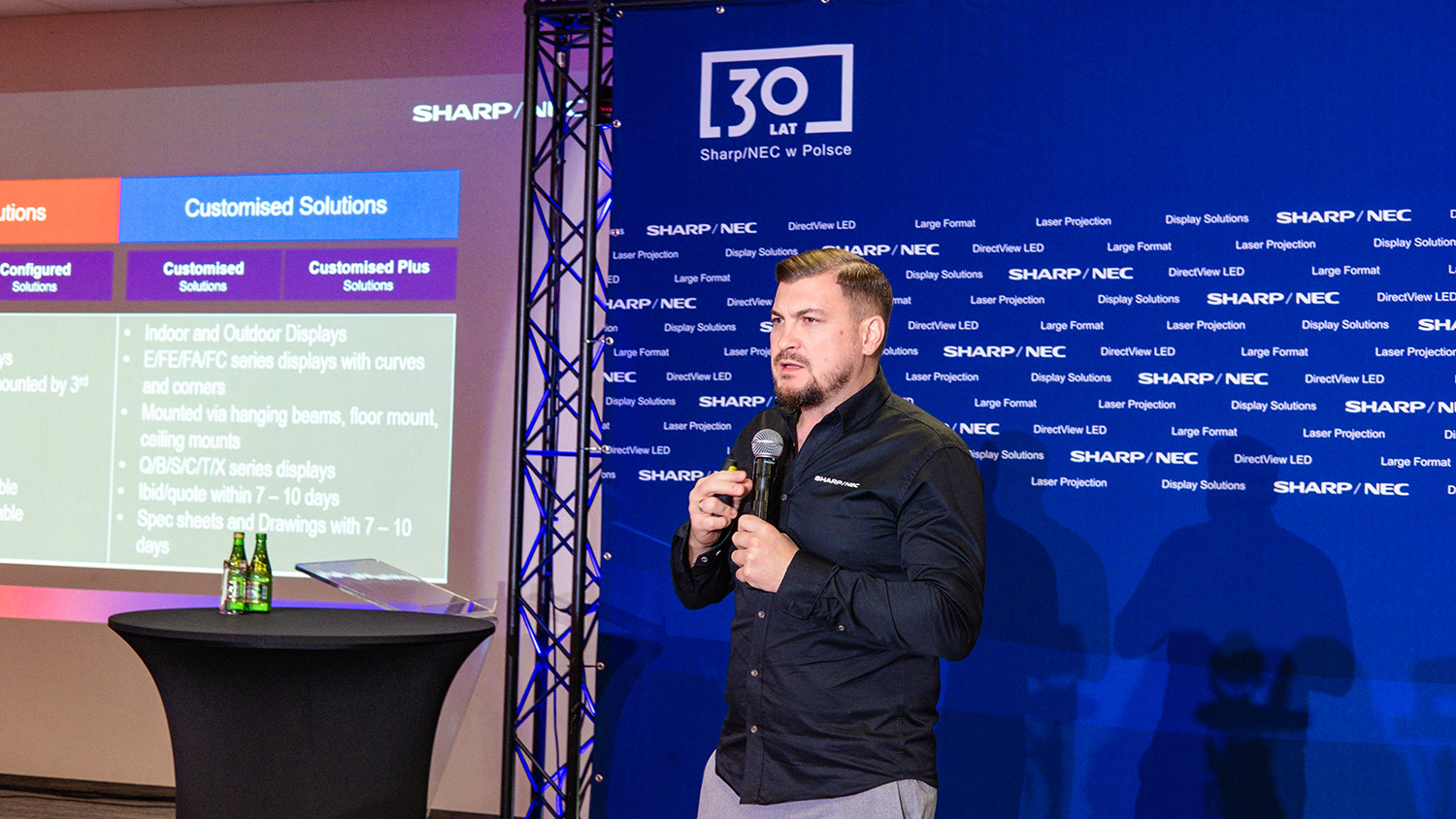 Sharp NEC Display Solutions jest jednym z czołowych światowych dostawców monitorów LCD, ścian video, ekranów LED oraz projektorów. Polskie Przedstawicielstwo zlokalizowane w Krakowie działa już od 30 lat. Firma posiada szeroką ofertę monitorów desktopowych i wielkoformatowych, od modeli podstawowych do profesjonalnych i specjalistycznych takich jak chociażby: wielkoformatowe monitory do zastosowań reklamy cyfrowej, monitory do budowy ścian video, czy monitory interaktywne m.in. do zastosowań meeting rooms. Portfolio wyświetlaczy wielkoformatowych zamykają moduły LED, zarówno do instalacji indoor, jak i outdoor. Oferta projektorów obejmuje produkty do różnych zastosowań, od przenośnych biznesowych projektorów, poprzez projektory instalacyjne, urządzenia do pracy ciągłej, aż po cyfrowe projektory kinowe.